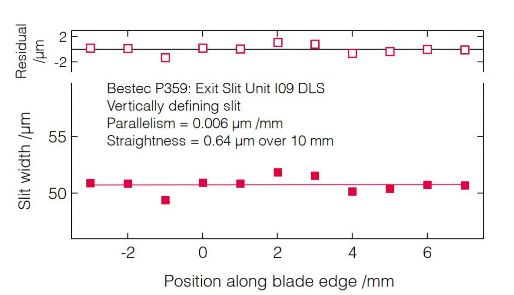 - Very small deviation (submicrometer) of the slit opening calibration curve from the theoretical non-linear slit opening function.