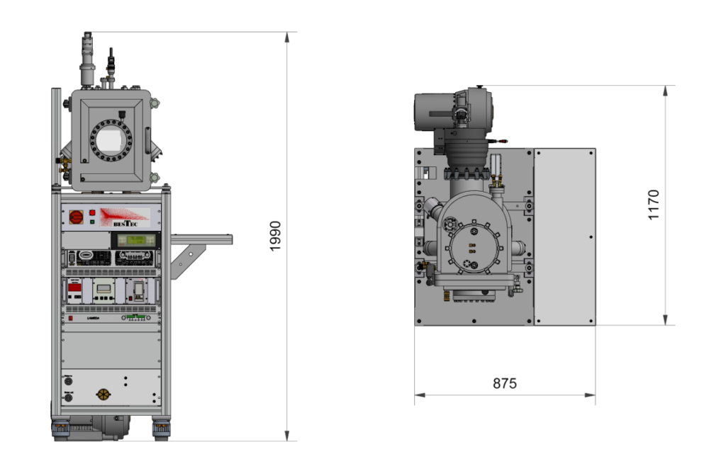 - Sample manipulator with integrated sample shutter and maximal sample temperature above 600°C.